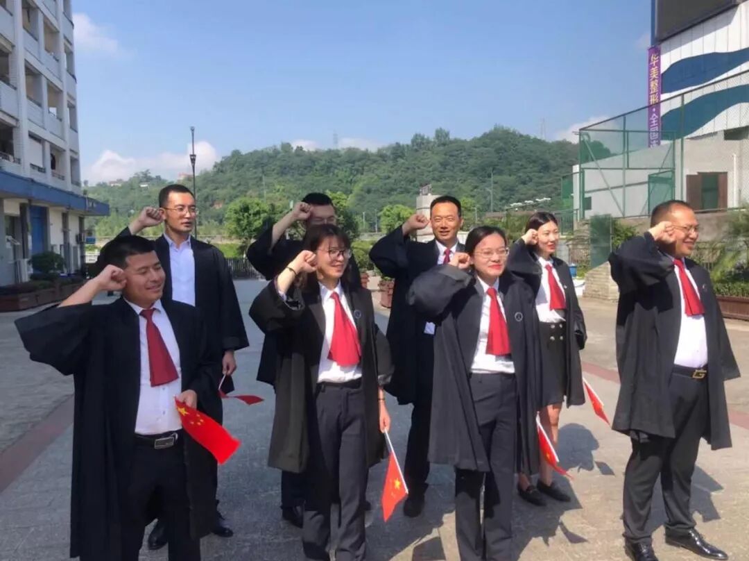 在首力律师事务所外宣专员郭林娜的指挥下,四川首力律师事务所党支部书记冯林带领党员们齐唱《我和我的祖国》。