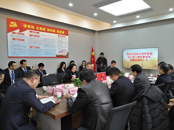 2018年2月5日,四川省律师协会副会长在南充市司法局领导、南充市律师协会秘书长等人员的陪同下,莅临四川首力律师事务所开展律师调研活动,并对我所的律师业务的工作开展进行了指导。