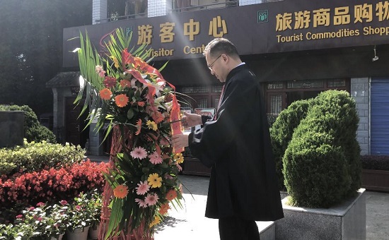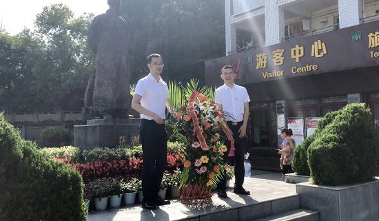 首先,在张澜纪念馆前,党员们向张澜塑像敬献了花篮,四川首力律师事务所党支部书记冯林作为党员代表精心为花篮整理缎带,首力所党员律师们三鞠躬表达了对先烈的无限哀思和敬意。