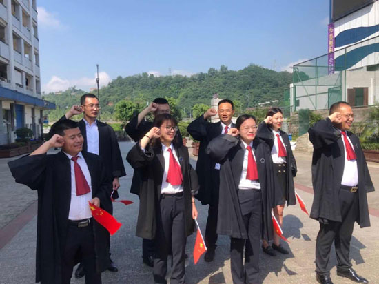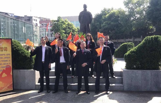 四川首力律师事务所党支部书记冯林带领党员们面向鲜红的党旗庄严地重温了入党誓词。