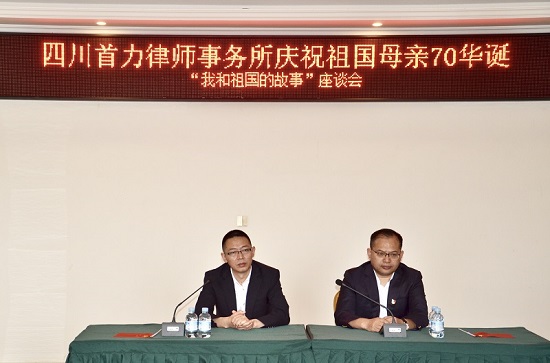 为庆祝新中国成立70周年,激发青年党员律师爱党爱国热情,展示首力律师风采,进一步推动首力所文化建设。2019 年9月29日上午,四川首力律师事务所党支部(以下简称:首力所党支部)开展“我和我的祖国”主题宣传教育活动,在南部县升钟蓝港酒店召开“我与祖国的故事”座谈会,来自首力所的律师和行政管理人员共抒爱国之心。本次座谈会由首力所党支部预备党员肖丽萍律师主持。
