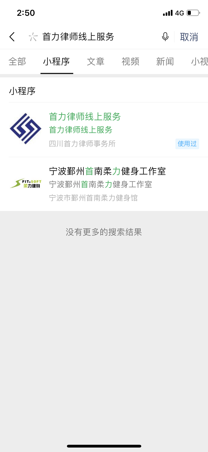 方式2:打开微信“搜一搜”或“小程序”功能,输入“首力律师线上服务”。