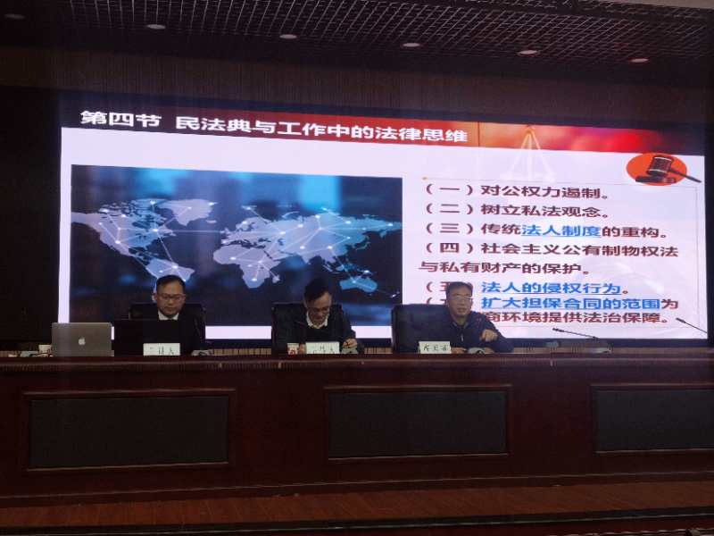 本次法律知识专题讲座主要围绕《民法典》编撰的历程、《民法典》编撰的意义、《民法典》与生活通行、《民法典》在工作中的法律思维四个方面展开。讲座内容丰富、鲜活生动、贴近生活,具有很强的实践性、指导性、针对性,对大家理解把握《民法典》的重要意义提供了有益帮助。