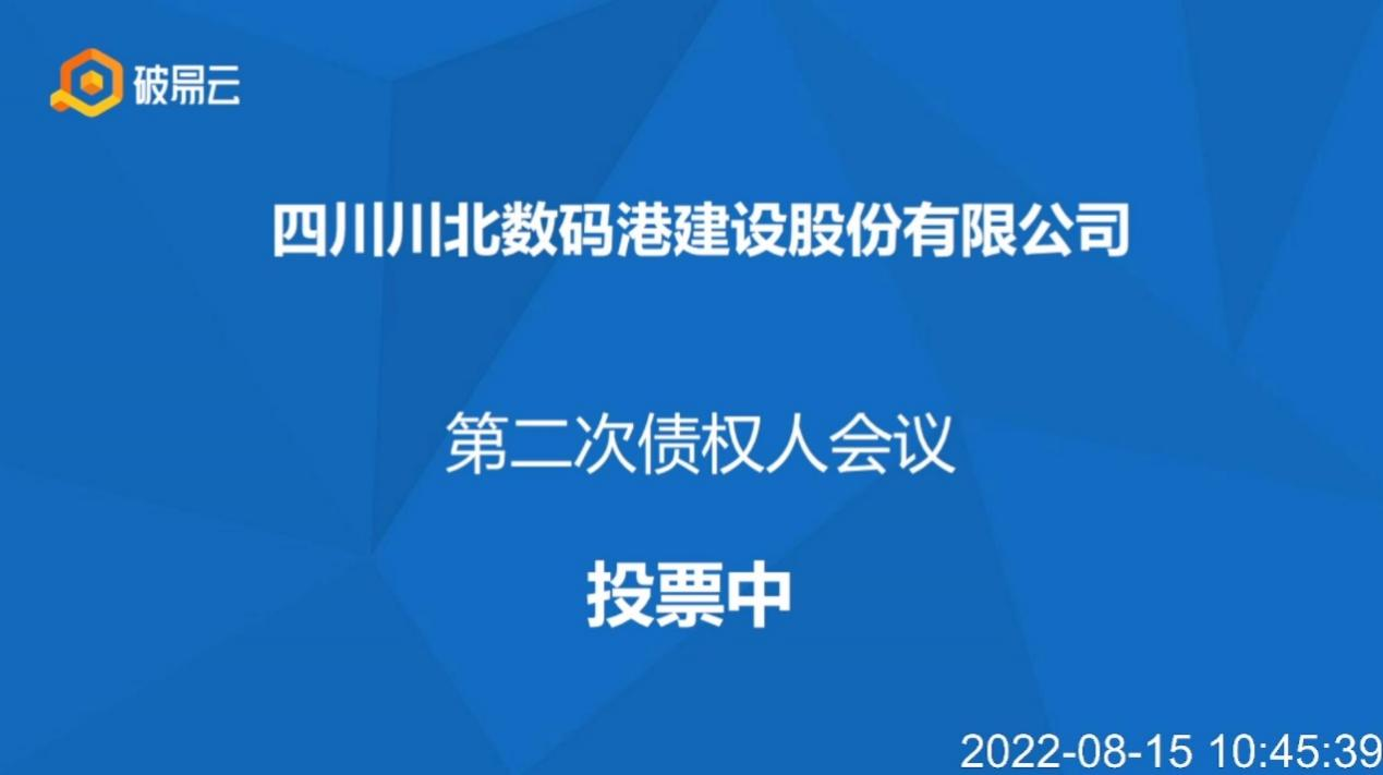 2022年8月15日上午9时30分,四川川北数码港建设股份有限公司第二次债权人会议在管理人办公室顺利召开。本次会议由管理人提议召开,会议由债权人会议主席明峰主持,顺庆区人民法院合议庭成员、管理人、债务人代表、审计机构工作人员现场参加会议,“破易云”网络视频会议平台全程直播,100余名债权人通过线上平台参会。