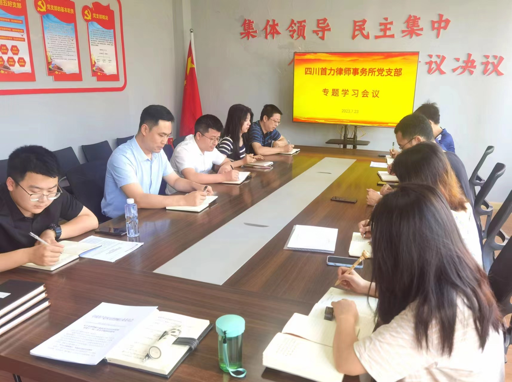 7月23日上午,四川首力律师事务所召开专题学习会议,传达学习贯彻司法部党组“做党和人民满意的好律师”座谈会精神,研究贯彻落实措施。会议由我所党支部副书记唐紫星主持,支部党员、预备党员、发展对象参会。