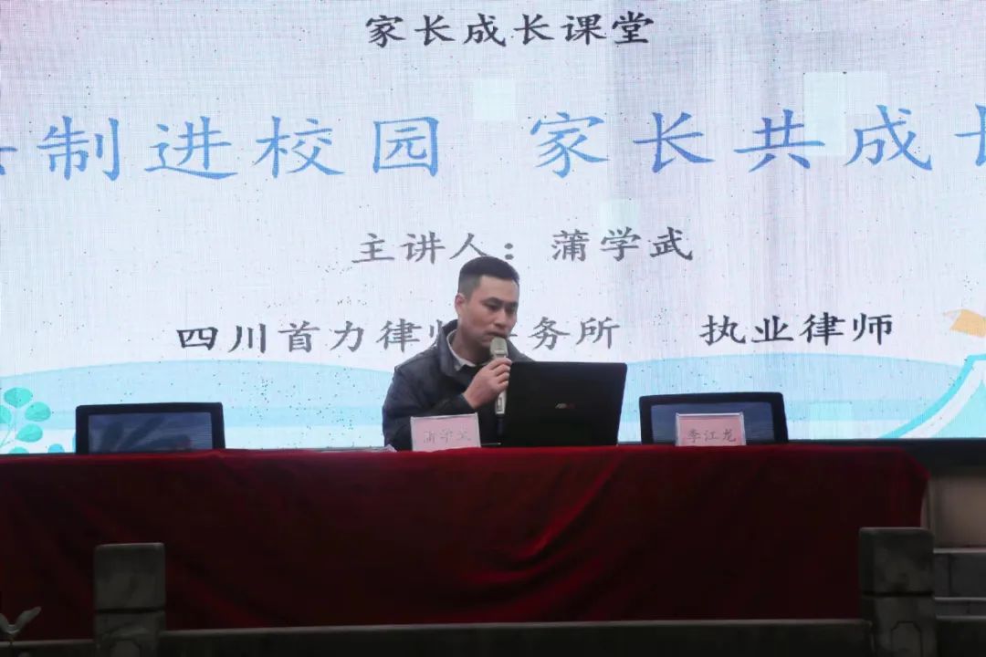 此次校园法律讲座内容丰富,涵盖《义务教育法》、《家庭教育促进法》、《未成年人保护法》等法律知识介绍。讲座中,蒲学武律师通过真实案例以案释法,强调了父母在家庭教育中的重要性,呼吁各位家长以法律为指引,树立正确的家庭教育观念,切实担好监护人职责,更好的保护未成年人的身心健康。活动现场氛围十分热烈。