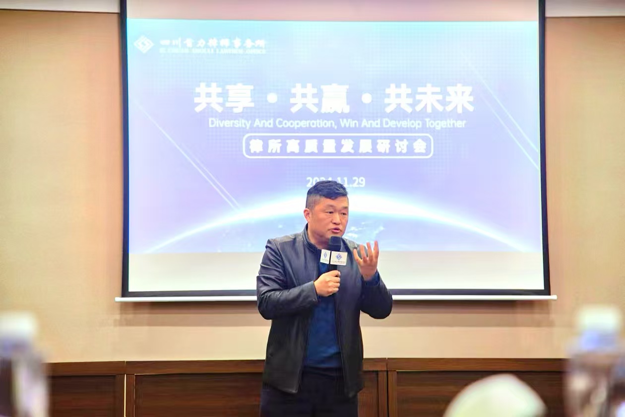 11月29日,由四川首力律师事务所(以下简称首力所)主办的“共享·共赢·共未来”律所高质量发展研讨会在我所顺利召开。市司法局党组成员、副局长、市律师行业党委书记余新平出席并讲话,市律师行业党委副书记、市律师协会会长谭俊林,市司法局律师科科长杨鹏飞,全市律所书记、主任、合伙人共20余人参加本次研讨会。会议由首力所行政总监唐紫星主持。