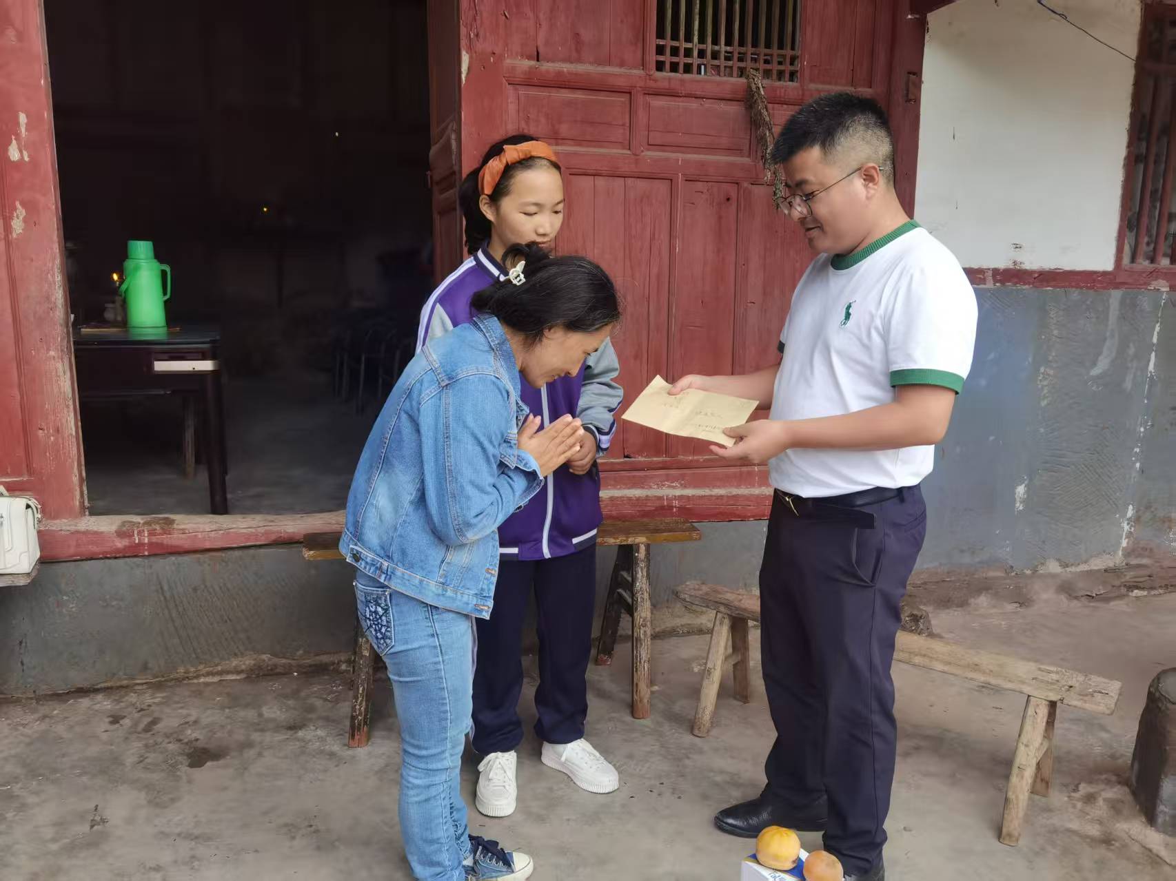 院坝里,任主任与学生家长促膝长谈,详细询问孩子们的学习、生活情况以及面临的困难,并给予殷切关怀,勉励孩子要克服困难、奋发图强,健康成长,树立积极向上的世界观、人生观、价值观,用知识成就人生,争做新时代好少年,努力成为对社会有用的人。